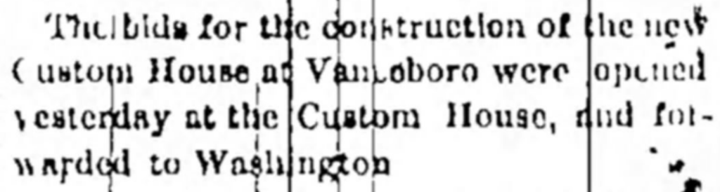 The May 29, 1884 issue of the Bangor Daily Whig and Courier reported opening bids for the Custom House had been received and forwarded on to Washington D.C.