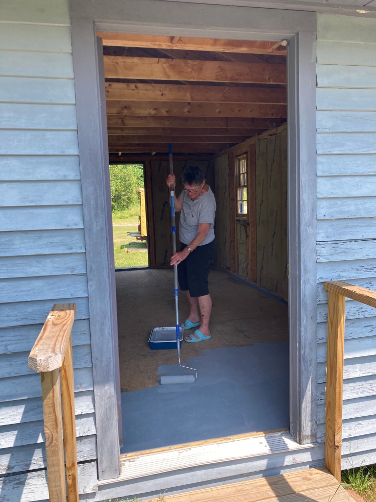 Mary McAlaney paints museum floor Alaine Peaslee-Hinshaw replaces windows while David Brown, Donna Beach Wright and Lyn Mikel Brown paint museum exteriorMark Hyland and Faye Luppi wire the interiorEnzo Cameli scrapes the exteriorBilly Grass cuts replacement trim boardsThe end of the day and a fresh coat of paint!