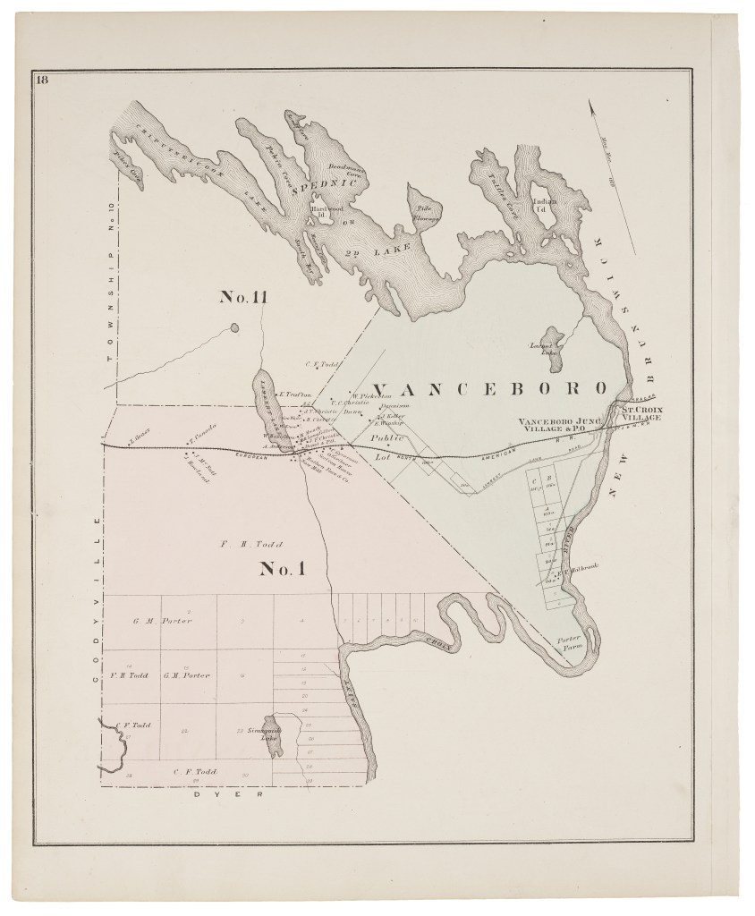 1881 F. H. Todd + Charles F. Todd (Calais) / G. M. Porter of St. Stephen – farm lots on St. Croix